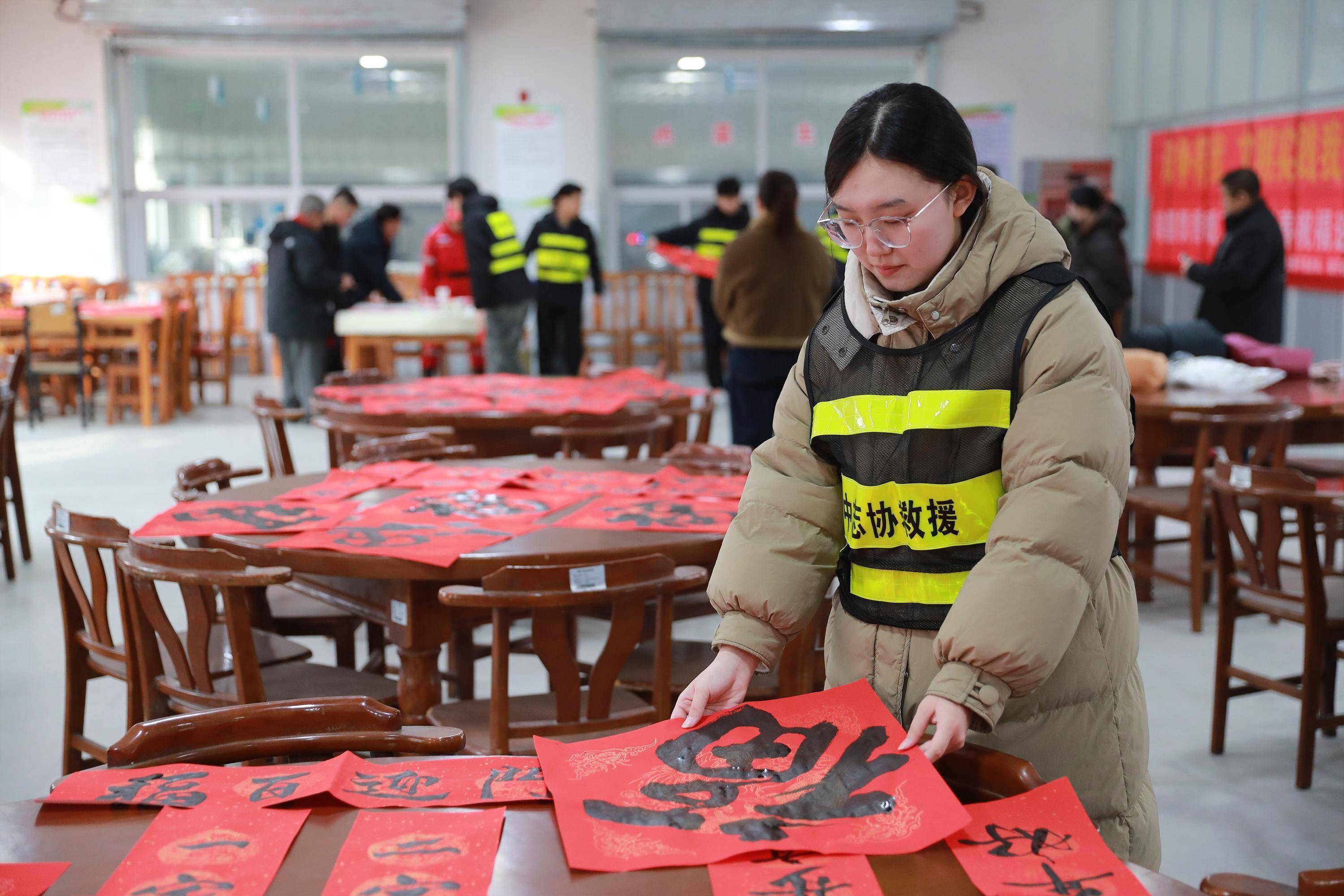 志愿者整理写好的福字。吴潇摄
