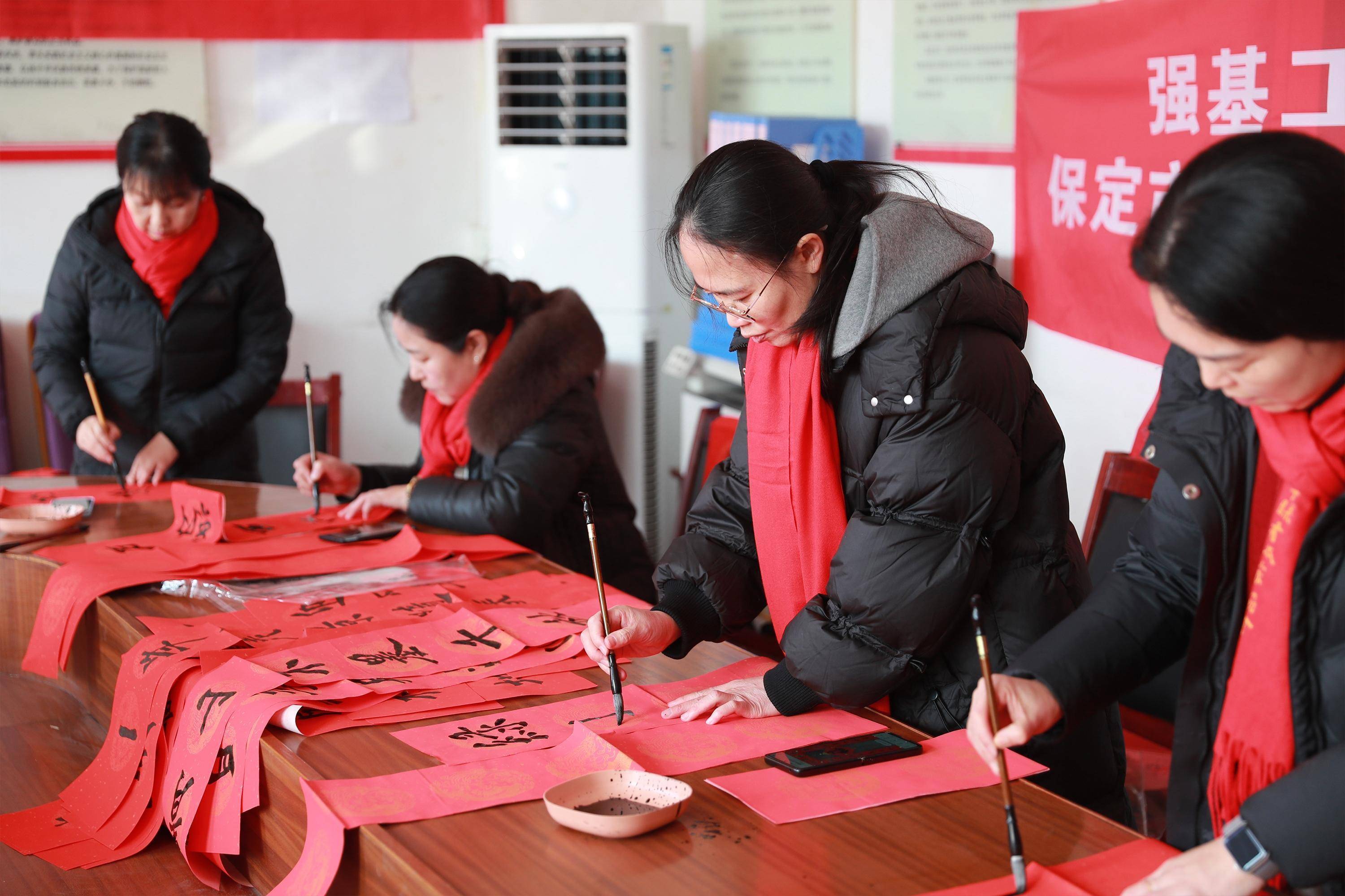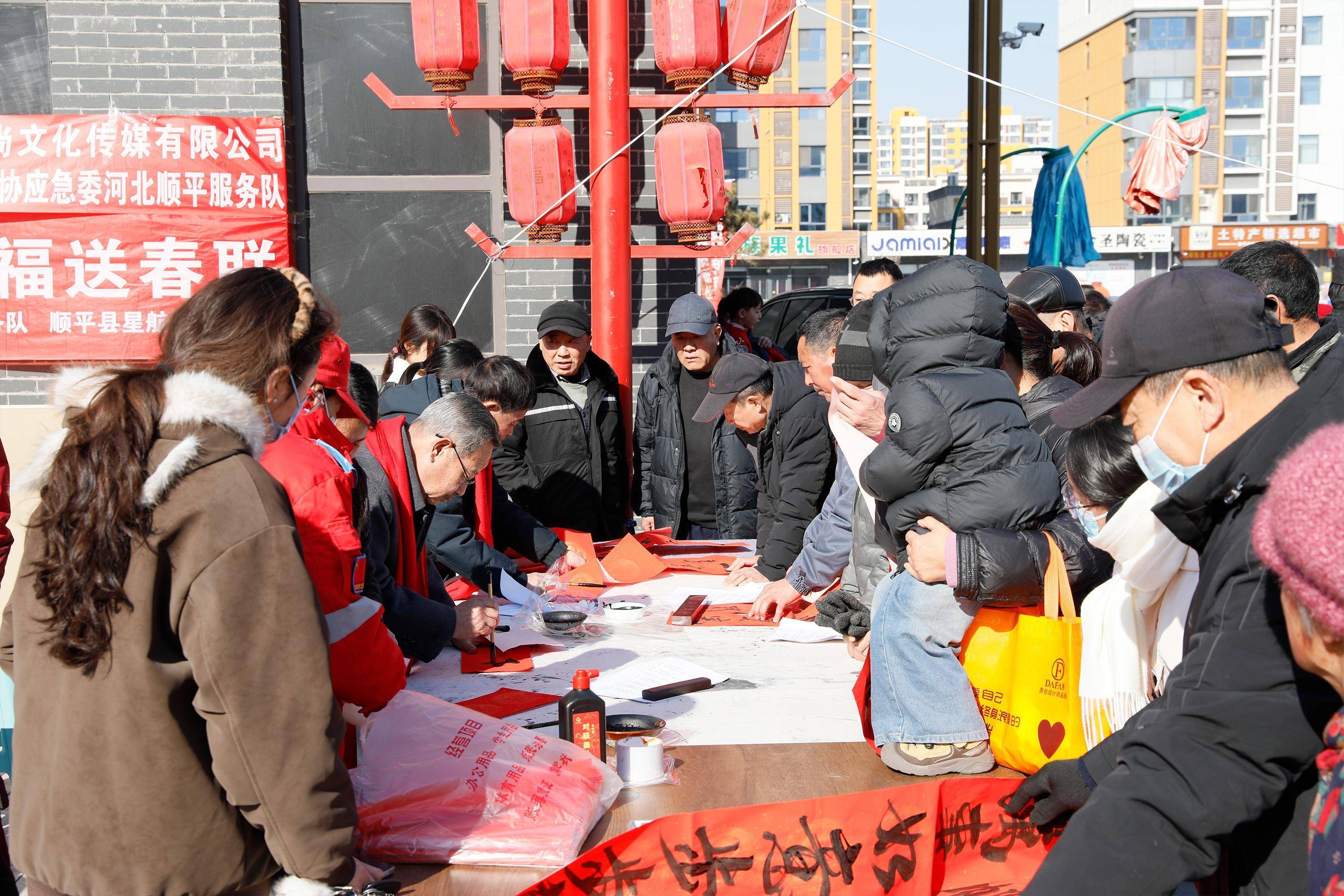 书法爱好者们现场写春联。吴潇摄近日,河北省顺平县开展形式多样的志愿送福活动,书法爱好者们挥毫泼墨、寄情于纸,为群众免费书写春联、赠送福字,让墨香承载温情,让祝福走进千家万户。